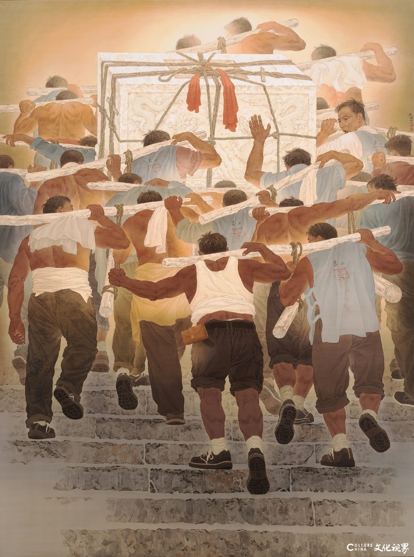 刘璐璐亦有发达期间精神的主题性创作,如作品 《基石》,入选了第十四届世界好意思展,发达的是新期间泰山挑山工精神,她通过神态贫寒攀高的画面场景,展现了挑山工不畏艰险、金石可镂的精神品性,以朴实的形象和远程的服务,抒发了对挑山工奉献精神的陈赞。画面中的挑山工是以团队方式展现,体现了一种伙同相助的力量。在色调上与发达孩童的色调系统统统不同,举座以赭红色调进行发达,暗中的皮肤、粗壮的臂膀、有劲的双腿,无不突显然挑山工的力量感,他们像是一座移动的山岭,每一步抬起与落下变成一股凝固的精神能量。画面组成了一种难受的力量,一种震撼东谈主心的力量好意思,彰显出生命的坚毅、解释出死力的价值。新期间挑山工的精神,是一种长入传统与现代价值的雄伟精神力量,是任何边界发展的必备能源,对个东谈主而言亦然收场自己价值的精神激励。刘璐璐四肢新期间女性画家,有着更为温柔顺明锐的角度,大致愈加关怀履行社会中东谈主物形状,她能以女性特有的绘制质感描写那些在期间波澜下真善好意思的倏地,为咱们带来一种和顺感受的同期,亦不缺少对当下期间的深切想考。