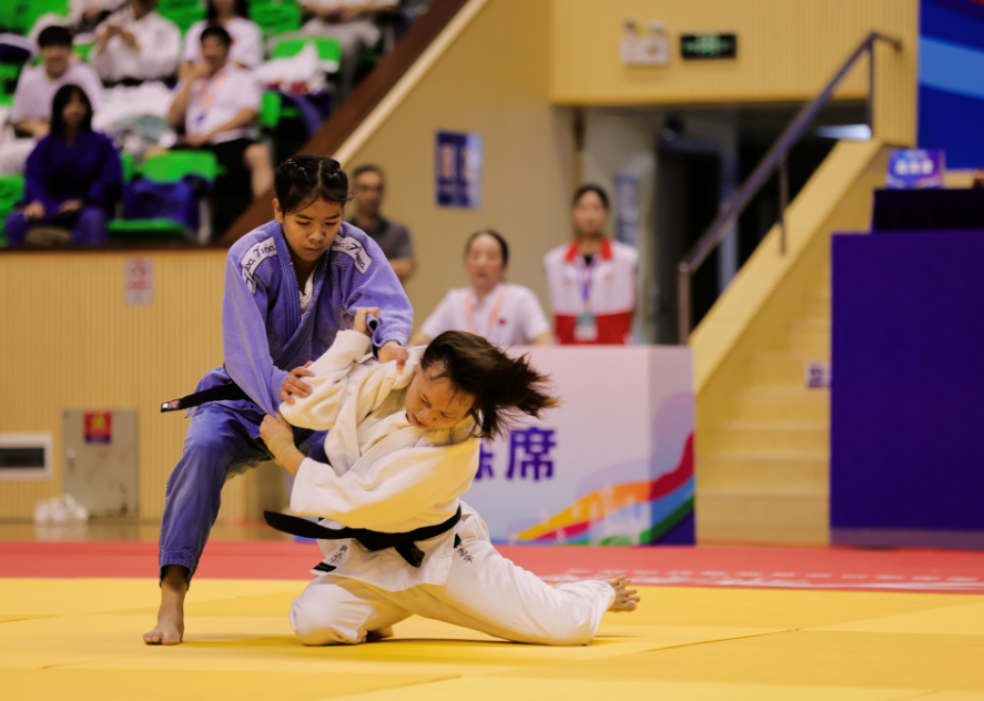 赛场上,柔说念垫成为热血与心扉的舞台。选手们身着清白柔说念服,目光锋利如鹰,双手紧扣对方衣襟,脚步纯真转移,试探着敌手的转折。当紧要军号吹响,有东说念主猛然发力施展"过肩摔",将敌手重重压制;有东说念主奥妙借力打力,柔能克刚化解攻势。馆内不停响起选手倒地的闷响与不雅众的惊呼,进修在场边挥动双臂嘶吼政策,家长们抓紧拳头屏息不雅战,接连继续的加油声与裁判哨声交汇,烽火了扫数赛场的火热氛围。