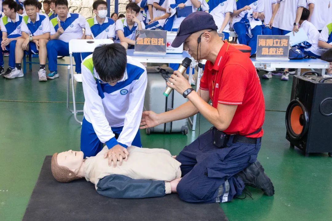 跟着地震警报声响起,整体师生第一时刻就近避开在课桌下、墙角处,蜷曲躯壳,双手抱头,利用书包等物品护住环节部位,进行紧迫避险。当“地震波”责难,第二次疏散警报声响起,全校师生立即按照预定疏散路子,栩栩如生地向操场安全区域撤回。疏散经过中,同学们算作连忙,不推挤、不喧哗,仅用 3 分钟,全校师生便沿途安全联结到指定地方。随后,各班班主任快速盘点东说念主数,并向演练总招引确认注解,总共演练经过垂危有序、为德不终紊,在此经过中还诞生了转运伤员和医疗救护场景。除了地震演练,学校还用心组织了校园移动传教车、心肺复苏体验、止血包扎体验、消防熄灭体验、烟说念逃生体验区等丰富各种的防灾减灾实施体验举止。