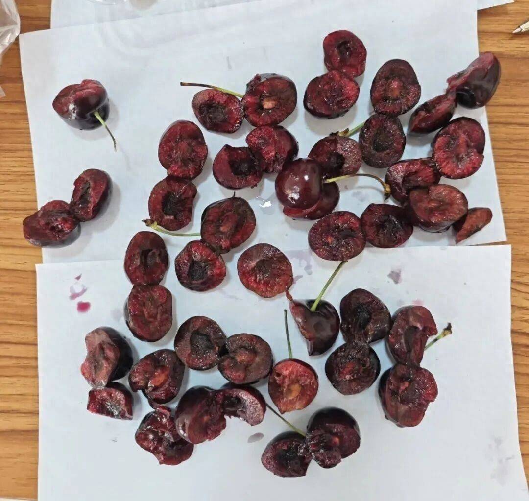 成雨洁进一步解说,天然一些车厘子从果柄来看如故绿的,但吃起来是苦的,实则它的果肉依然褐变了。入口车厘子往往在MAP自觉气调袋中运载保鲜,但随存放浪艺延迟,袋内因生果呼吸作用积存的二氧化碳浓度可能超出果实耐受限制,从而导致发苦、变质。
